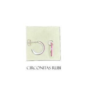 - PENDIENTES PLATA RODIO ARO CIRCONITAS RUBI // EARRING SILVER 925 RHODIUM RING CZ RED
