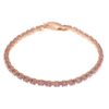 SILVER BRACELET PLATED ROSE GOLD WITH AQUA GREEN PRINCESS CUT AND BRIGHT RUBY CZ WITH BOTTOM PLATED RUTHENIUM.