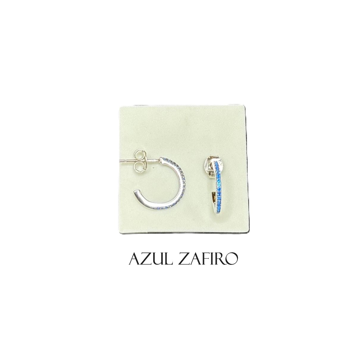 PENDIENTES PLATA RODIO ARO CIRCONITAS AZUL ZAFIRO // EARRING SILVER 925 RHODIUM RING CZ BLUE BLUE