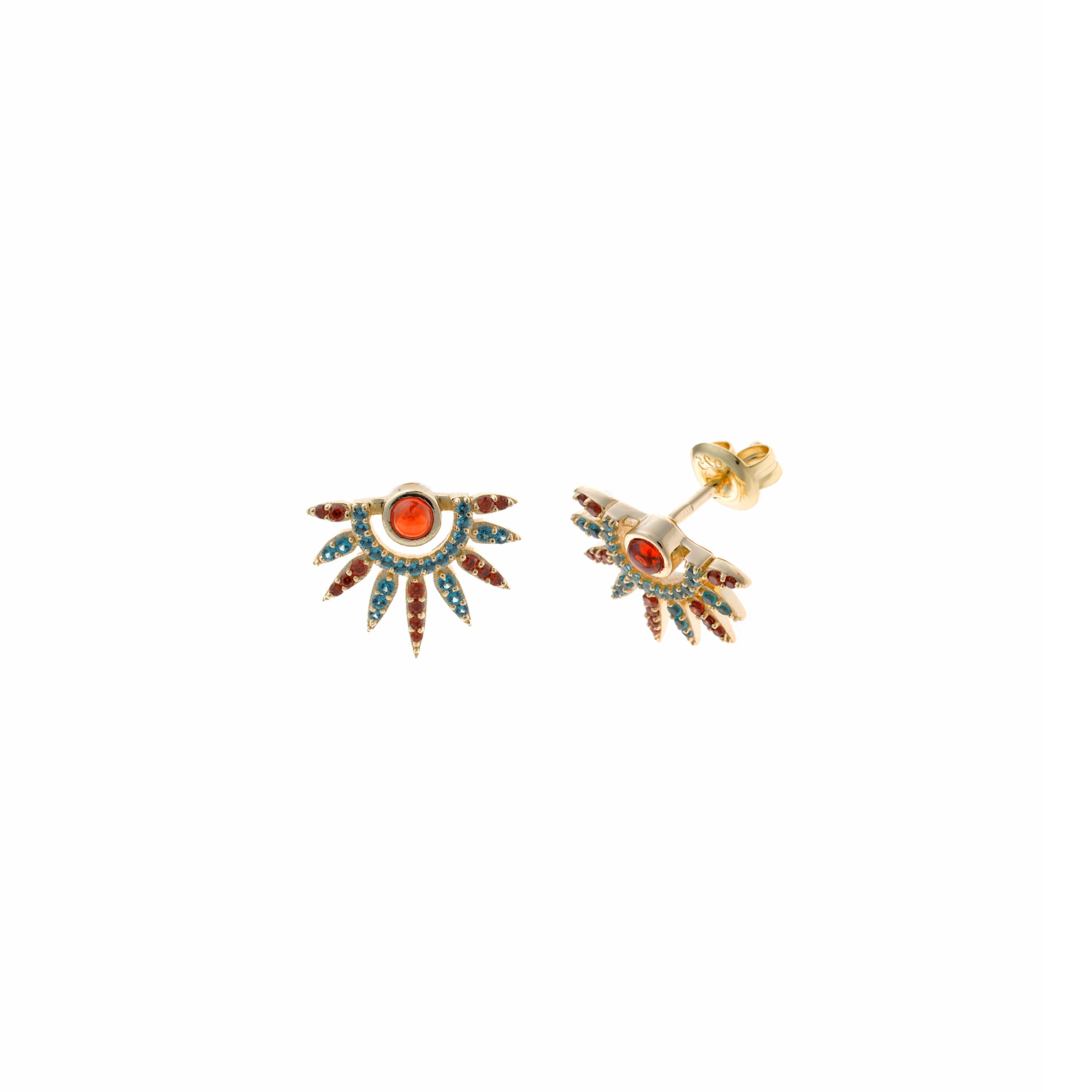 PENDIENTES PLATA CHAPADO DORADO PINCHOS CIRCONITAS PARAIBA Y ROJAS CHATON ROJO CABUCHON // EARRING SILVER 925 PLATED GOLD SKEWERS CZ PARAIBA AND RED CHATON RED CABOCHON