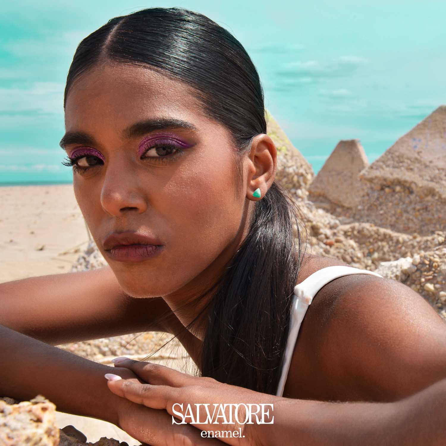 // PENDIENTES PLATA CHAPADO DORADO TRIANGULO ESMALTE VERDE
