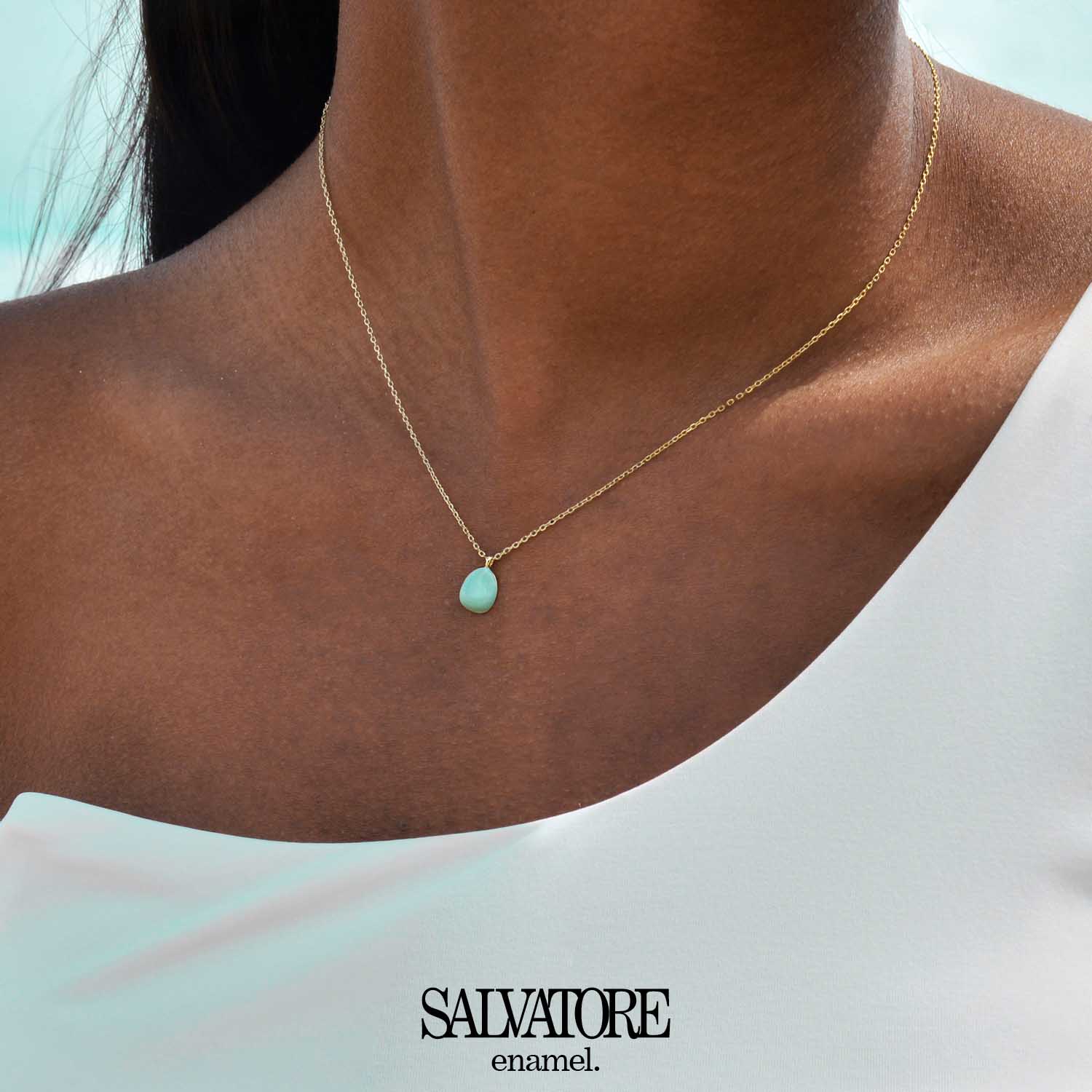 // COLLAR PLATA CHAPADO DORADO OVALO ONDADO ESMALTE VERDE