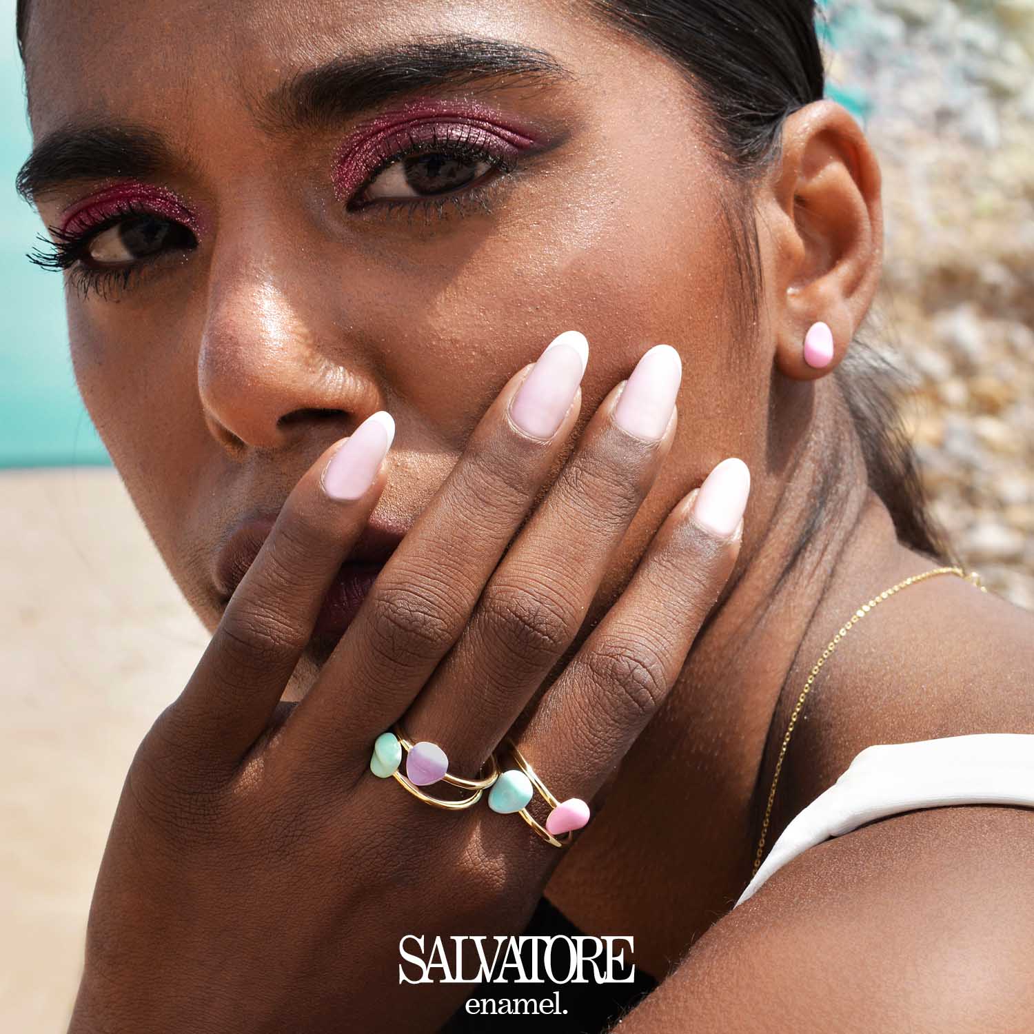 // SORTIJA PLATA CHAPADO DORADO OVALO ONDADO ESMALTE VERDE
